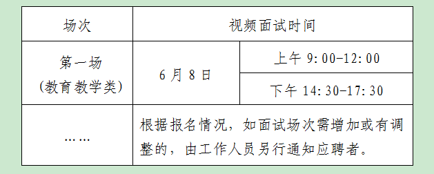 符合岗位条件的考生,免笔试,直接进行面试。面试采取视频面谈测评的方法,主要测评考生的专业知识和综合分析、临场应变、组织协调等能力,测评成绩分为优秀、良好、一般三个等次。