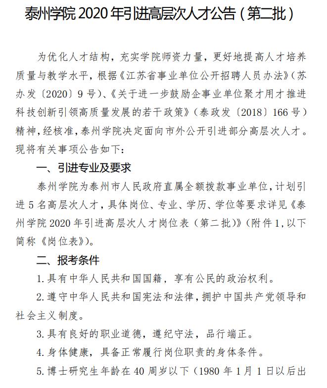 附件1 泰州学院2020年引进高层次人才岗位表(第二批).pdf
