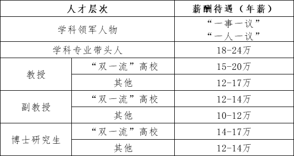 1.基本年薪。根据学校制度,对符合引进条件的高层次人才,基本年薪为:
