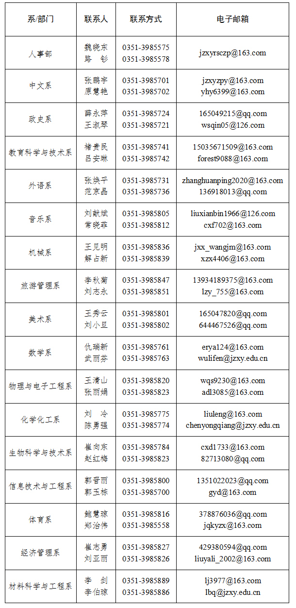 2.以上报名材料电子版及证件扫描版请同时发至人事部和相关系的电子邮箱中(见附表)。