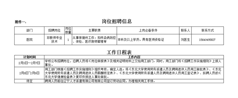 (一)相应岗位具体情况、招聘工作日程及联系人见附件一。