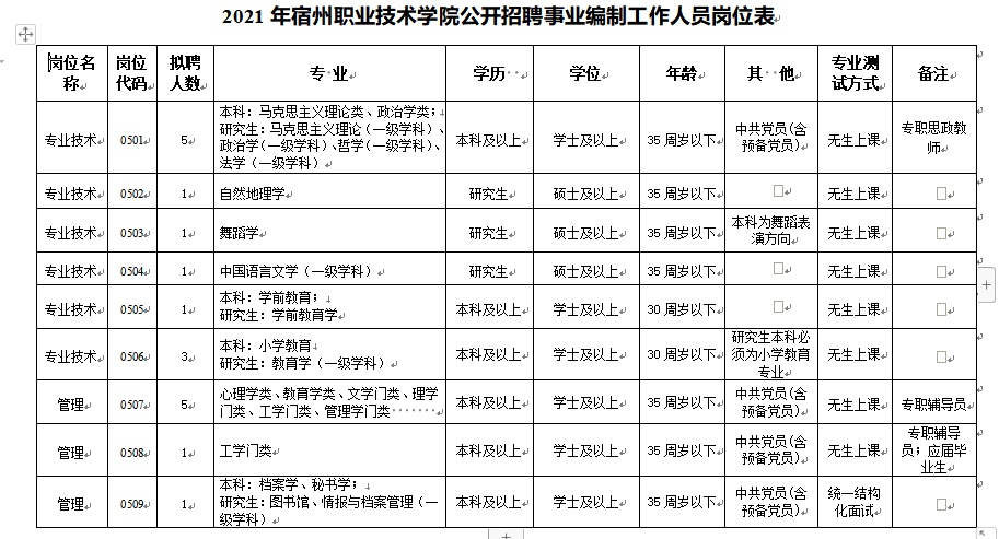 在2021年度宿州市市属高校公开招聘计划中安排部分招聘计划,用于专项招聘“应届毕业生”,包括以下人员: