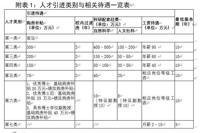 5.第一类至第四类及第七类人才的首聘期内工资待遇包含协议任务要求,超出任务部分可另外享受学校教学科研奖励绩效。