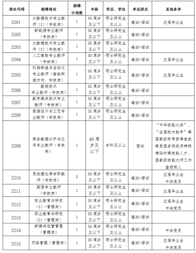 具体条件见附件1《天津轻工职业技术学院2023年(第一批)招聘计划表》