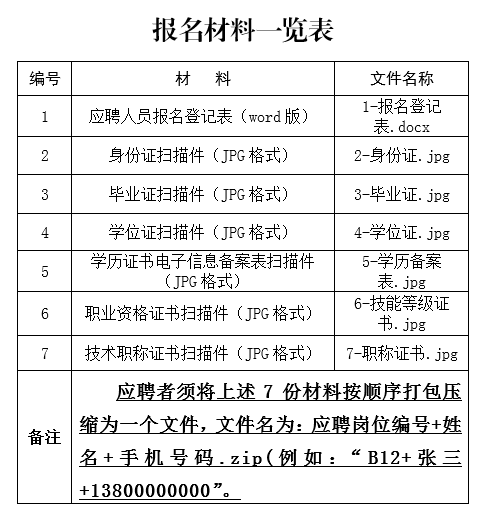 应聘者应按照上述要求认真、如实准备相关材料,于规定时间内将报名资料按所报岗位发送至指定邮箱,否则报名无效,报名截止时间后不再接受报名和资料补报。