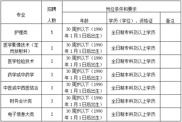 根据工作需要,桐城市中医医院拟招聘合同制护理类、医学影像技术(定岗放射科)、医学检验技术、药学或中药学、中医或中西医结合、财务会计类、电子信息大类专业技术人员20名,现将有关事宜公告如下: