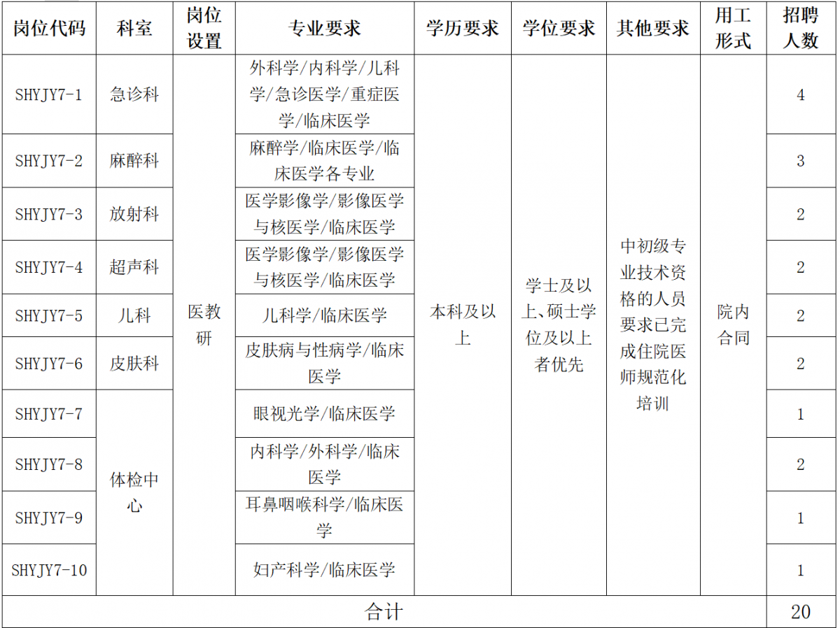 目前,中山大学孙逸仙纪念医院深汕中心医院因工作需要,面向社会公开招聘合同医教研人员20名,现将有关事项公布如下: