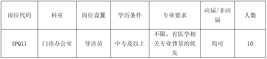 因工作需要,医院现面向社会公开招聘门诊导诊员10人,现将有关事项公布如下: