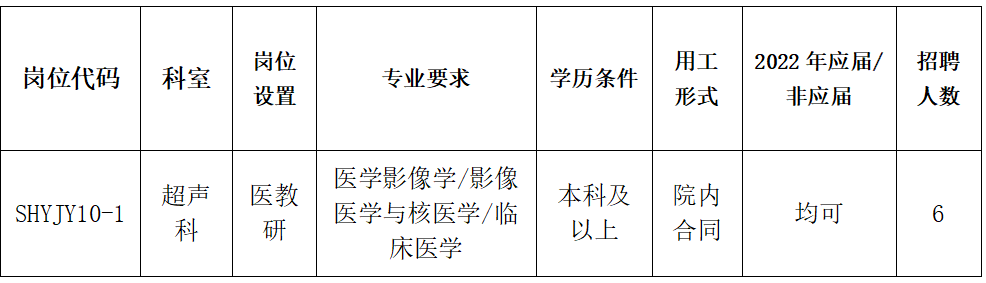 目前,中山大学孙逸仙纪念医院深汕中心医院因工作需要,面向社会公开招聘超声科合同医教研人员6名,现将有关事项公布如下: