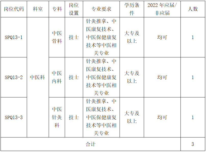 中山大学孙逸仙纪念医院深汕中心医院因工作需要,医院现面向社会公开招聘中医科医技3人,现将有关事项公布如下: