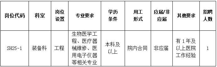 目前,中山大学孙逸仙纪念医院深汕中心医院因工作需要,面向社会公开招聘装备科设备维修管理工程师1名,现将有关事项公布如下: