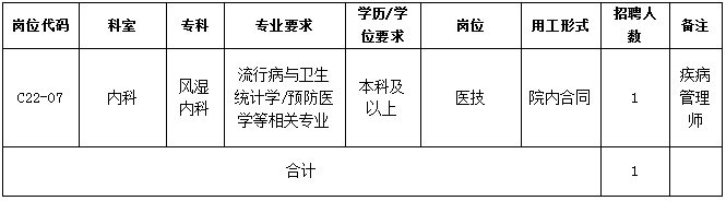因工作需要,面向社会公开招聘医技岗位共1人,现将有关事项公布如下: